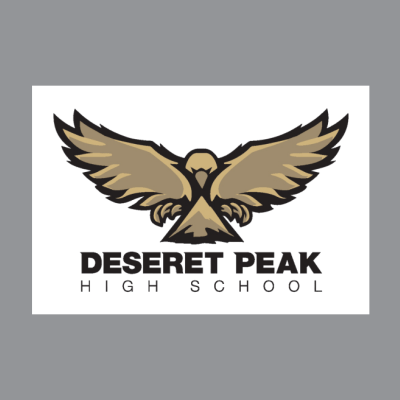 Show your Golden Eagle pride with this durable vinyl sticker featuring the Deseret Peak High School logo and name in full color. Perfect for vehicle windows, laptops, and more!